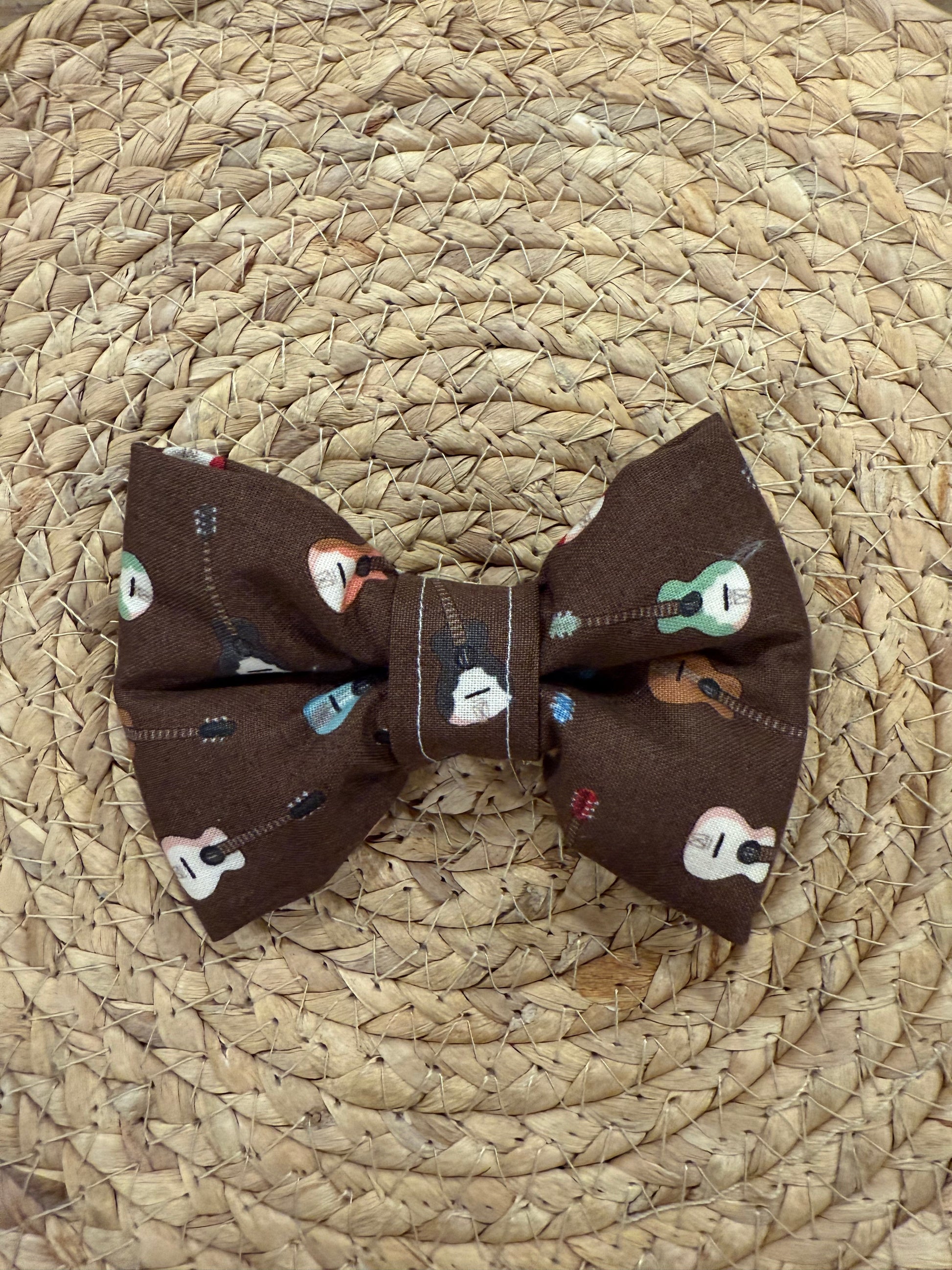 Handmade dog collar bowtie with elastic bands. Easy to use, just slide collar through the 2 elastic bands and that's it. Hand wash and air dry as needed.
