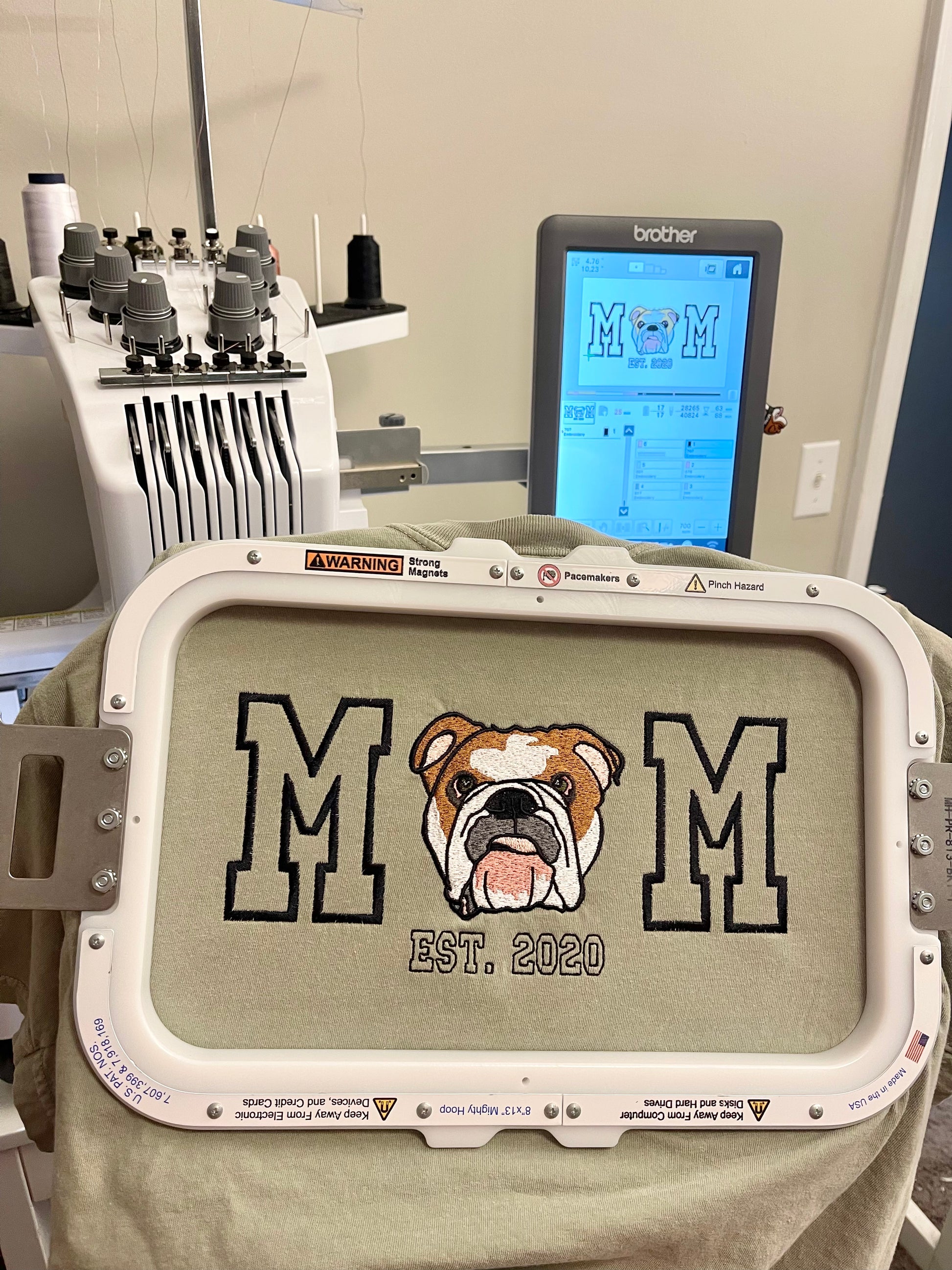 Custom Pet Portrait "MOM" T-shirt (Embroidery)